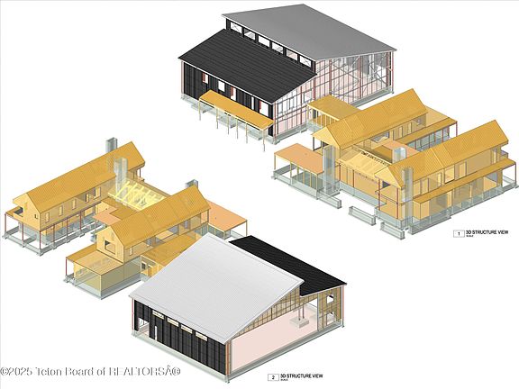 Positioned north of the hangar, the future main residence is thoughtfully designed for both luxury and practicality. The first floor, measuring 6,085 square feet, includes a grand entryway, office, dining and living areas, a gourmet kitchen with a pantry, a laundry room, and a private casita-style bedroom. A 450-square-foot screened terrace enhances the home's seamless indoor-outdoor living experience. The second floor is divided into north and south wings. The north wing features the primary suite with a private porch and green roof access, along with two additional guest bedrooms. The south wing includes a library, a bunk room, and an additional guest bedroom. A bunk terrace offers an elevated outdoor retreat, while an exterior steel staircase leads to a separate bedroom with its own walk-in closet and en-suite bathroom.