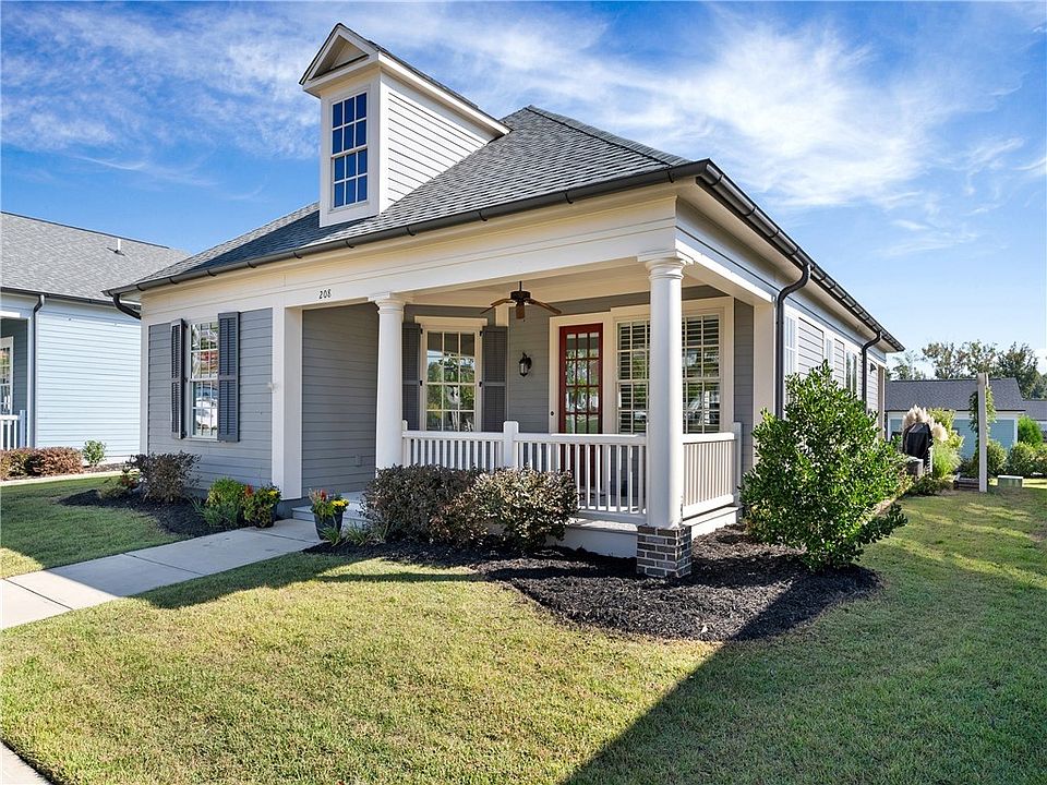 Stunning Patrick Square home offering one of the best home values in the community. The bright and open floor plan takes advantage of generous spaces for entertaining inside and out. There are high ceilings, sleek architectural lines, hardwood floors and expansive windows throughout this lovely home. The kitchen flows into the dining area and fireside great room for convenient everyday living. The chef's kitchen is appointed with a center stage island, Granite counter tops, gas range oven, stainless steel appliances and custom cabinets. The master suite features a large walk-in closet and a spa-like bath with dual vanities and a walk-in shower. There are two additional private guest rooms with a full bath. A special highlight to this home is the outdoor entertaining area. The gorgeous stone patio is the perfect place to gather with friends and family. The yard is surrounded by beautiful landscaping. For additional storage, there is an oversized two car garage. Short walking distance to the clubhouse, pool, fitness center, pond, and walking trail. This home is the perfect place to begin a life time of memories at Patrick Square.