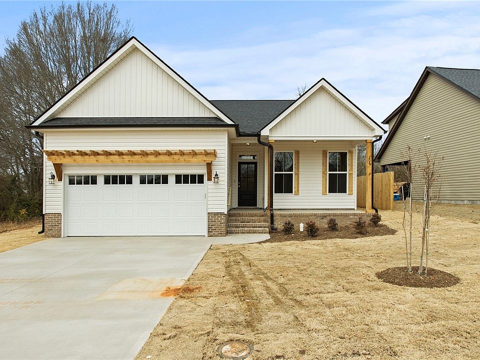 Back on the market through no fault of the seller! For Sale! Introducing 208 Athens St in Travelers Rest! New Construction! Located just a halfmile away from the Swamp Rabbit Trail and Uptown Travelers Rest. A great location with a children’s playground around the corner. This home is a real charmer! The rocking chair front porch welcomes you into the foyer and a 16x18 living room, with laminate flooring throughout the mainliving areas. Guest bedrooms, bathroom and laundry room are all off the hallway to the right of the foyer. Just across from the guest bedrooms is the laundry room with tile floor and upper cabinets for storage. Guest bedrooms are sized well and have walk-in closets. The hall to the guest bath includes a linen closet and large coat closet. Guest bath has tile floor, cultured marble counter with oval sink. The dining area is just off the living room and looks out onto the covered back porch with french doors and transom window. Enjoy your morning coffee out on your covered deck that looks out to a generous sized level back yard. The yard is fully soded and includes a wood privacy fence. It's perfect for children and pets.The kitchen has shaker white cabinets, an island, granite counters and stainless appliances. Let’s not forget the closet style pantry. The spacious master bedroom faces the back yard and has a large walk-in closet, an ensuite bath that includes soaking tub, separate tile shower and double sink vanity. Tile flooring completes the spa-like feel in this bathroom. Crown molding is thoughout the main living area and in the master bedroom. Large windows let the light in making all the rooms bright and airy! The 2 car garage includes keypad entry. This house is a perfect place to call home and make memories!