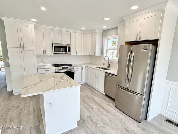 Custom New Construction Colonial in the Heart of MatamorasDiscover timeless style and modern luxury in this brand-new custom Colonial. A covered front porch sets the tone, offering a warm welcome and the perfect spot to relax outdoors. Inside, the open-concept kitchen, living room, and dining room create a spacious flow that's ideal for both everyday living and entertaining. At the center, the designer kitchen with a large island boasts floor-to-ceiling cabinetry, quartz countertops, a tiled backsplash, under-cabinet lighting, and premium stainless-steel appliances -- a true showcase for cooking and gathering. Just off the main living area, barn-style doors open to a private office with custom built-in bookshelves, Upstairs, the primary suite offers a walk-in closet and a spa-inspired bathroom with a beautifully tiled shower and built-in niche. Two additional bedrooms provide comfort and flexibility for family, guests, or hobbies, and the second full bathroom features dual sinks, a private toilet area, and a tiled tub, offering convenience and style for shared use. Throughout the home, luxury vinyl floors, custom trim, and energy-efficient systems highlight quality craftsmanship and modern design. Additional features include a full basement, central air conditioning, and propane heating for year-round comfort. Located in the heart of Matamoras, this new construction offers convenient access to schools, shopping, the Delaware River, and commuter routes to New York and New Jersey. Blending classic Colonial elegance with today's most desirable upgrades