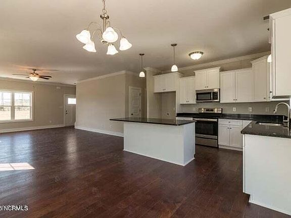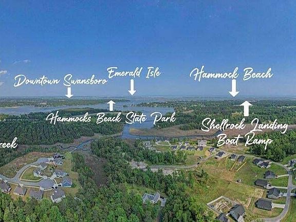Lovely water views! Perfect for familys who desire main floor living. Great open concept with the living, dining, kitchen, powder, laundry room and master bedroom all on the first floor. Ideal for owner who prefers seperation of living. This home sits up high and has some privacy looking straight through to the water . Community walking path access to pool and dock . What a spot ! New construction in popular gated and waterfront community of Garland Shores. HOA features waterfront pavilion, pool, dock, kayak launch, boat and RV storage, walking trail, garden area. Permitted and construction has begun. Minutes to multiple boat ramps, or kayak from the community dock to the ICWW and beaches . Close to Historic Swansboro, Emerald Isle and Hammocks Beach, Camp LeJeune and many amenities. All in a quiet and lovely community that offers an affordable water access lifestyle. Plans and specs subject to change. Fireplace shown on drawing is an optional addition. Buyer shall verify as built conditions prior to closing. Photos of similar construction.