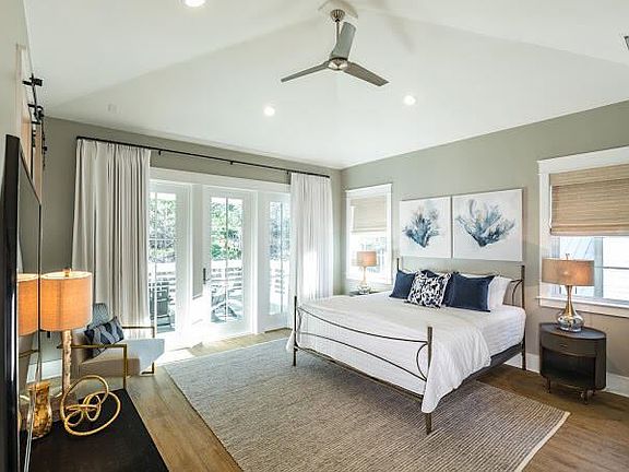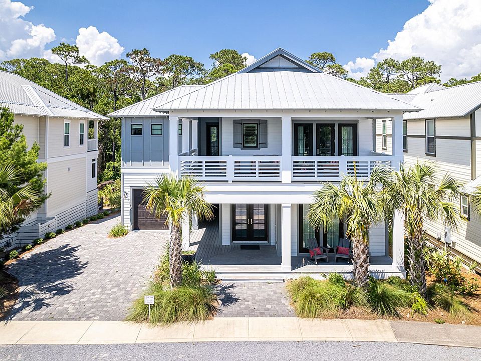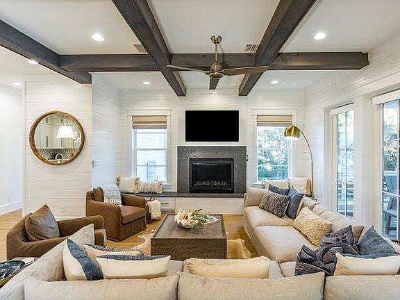 BACK ON THE MARKET! Beautifully constructed in 2020, this thoughtfully designed 4 BR/4.5 BA (plus bunkroom) home boast over 3000 square feet of well-planned living and entertaining space. No detail has been overlooked with standout finishes including wide plank floors, ship-lap accents, custom cabinetry, designer tile and lighting. The welcoming and open living room includes a coffered ceiling, large over-sized sofa, and a fireplace while the fully equipped kitchen offers commercial grade stainless appliances including a 6 burner gas range and extra-large island. Four large porches provide ample room to enjoy the warm Gulf breeze, and the two rear covered porches overlook the private wooded backyard with room for a pool. Additional highlights of this one-owner home include