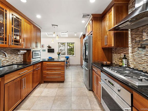 Never before available fabulous Greenwich end-unit in Boulder Ridge, a desirable luxury townhome community located in the Ardsley School District. This lovingly cared for home can easily live as a 4 or 5 bedroom with a desirable floor plan. The main floor has an open layout with a renovated eat-in kitchen, with stainless steel appliances and convenient access to a 2 car garage with Tesla charger. The dining room is currently being used as a den with a sliding door leading to an oversized Trex deck perfect for viewing spectacular sunsets. The large sunken living room has a wood-burning fireplace ideal for cozy evenings at home. A powder room completes the main level. Upstairs there is a primary suite with updated walk-in closet and bathroom. There are two additional bedrooms on this floor and a renovated hall bath with double vanities. The third floor is currently being used as a home office but could easily be a potential additional bedroom. The lower level has a second wood burning fireplace and two sliding doors (2022) leading to the backyard. There is also another room currently doubling as a guest bedroom and additional storage space and utilities and laundry. Amenities include a pool, tennis/pickleball courts, a clubhouse with private event space and fitness center, a playground with renovated basketball court and 24 hour gated security. There is bussing to all 3 Ardsley schools and easy parking at the Hartsdale train station. Luxury living and convenience at its best!