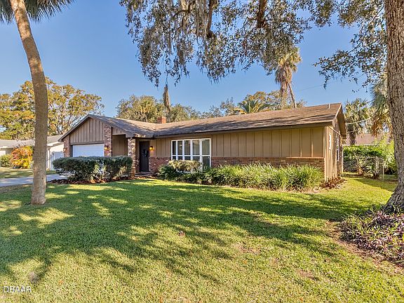 Move-in ready, split floor plan with three bedrooms, two baths and a two car garage that's centrally located in beautiful Port Orange. You'll love this sprawling ranch with both front living and dining room, as well as a family room with brick fireplace. The central kitchen has been updated in recent years with new cabinets, countertops, and stainless-steel appliances. Large private screened porch off the rear of the home will be great for enjoying the Florida weather. Situated in the A- Rated and desirable Port Orange school system, and of course just a 10 minute drive to the World's Most Famous Beach. A/C just replaced last year.