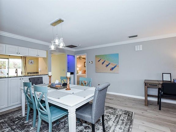 You can enjoy sitting in the morning sun as you watch it rise over the 7th Fairway directly outside your screened lanai. What a wonderful way to start the day in this fully remodeled 2-bedroom 2 bath home at Augusta Villas in Plantation Golf and Country Club! This home has been lovingly cared for with many updates. The tile roof was replaced in 2024. It has a neutral kitchen with stainless steel appliances and granite countertops, bathroom updates with decorator tile, vanities with granite countertops and comfort height toilets, Central air conditioning in September 2022, water heater, garbage disposal and window blinds in the main living area. Furnishings will remain with the home, with the exception of three wall hangings, in the living room The lifestyle is easy at Augusta Villas as it is a condominium community and maintenance free with two community pools and a community clubhouse. There are memberships available at the Plantation Golf & Country Club for Golf, Tennis or Social activities if you desire to belong but there are no mandatory memberships. You are also located near gulf beaches, downtown Venice Island, Wellen Park downtown and Cool Today Stadium where all types of activities happen, including the Atlanta Braves winter headquarters. And if you need to pickup guests coming to visit there is easy access to the interstate to get to Sarasota, Tampa, Fort Myers or Punta Gorda airports.
