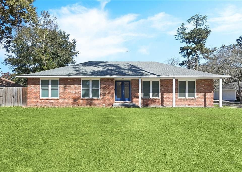 Be in your new home in time for the holiday season! Step into this move-in ready property and all you need to do is unpack. Renovated interior in 2021 with custom kitchen cabinets, quartz countertops, SS kitchen appliances, gas stove, huge breakfast bar, recessed lighting, VP flooring throughout and tile in the bathrooms, NO CARPET, and newer water heater. New roof in 2021, HVAC system and ductwork, new windows, and new gorgeous front door added in 2022. Primary bath refinished in 2023, guest bath made over in 2021. Washer and Dryer included with a large utility sink in laundry area and there is a cedar lined fur closet in the front guest room! Custom tile entryway, screened in back porch, newer fence, new extended concrete patio with new patio cover for all your entertaining needs. Huge back yard, separate fenced area in rear yard excellent for small garden or securing pets. Did I mention pets? Introduce your fur baby to the luxury of a large, automatic dog door installed with (collar included) activated entry and exit, programmable via phone app. So many possibilities with the open floor plan and plenty of storage throughout. X flood zone, just a quick stroll to John Slidell Park and a community pool. Welcome your family to this beautiful home with elegance and ease!