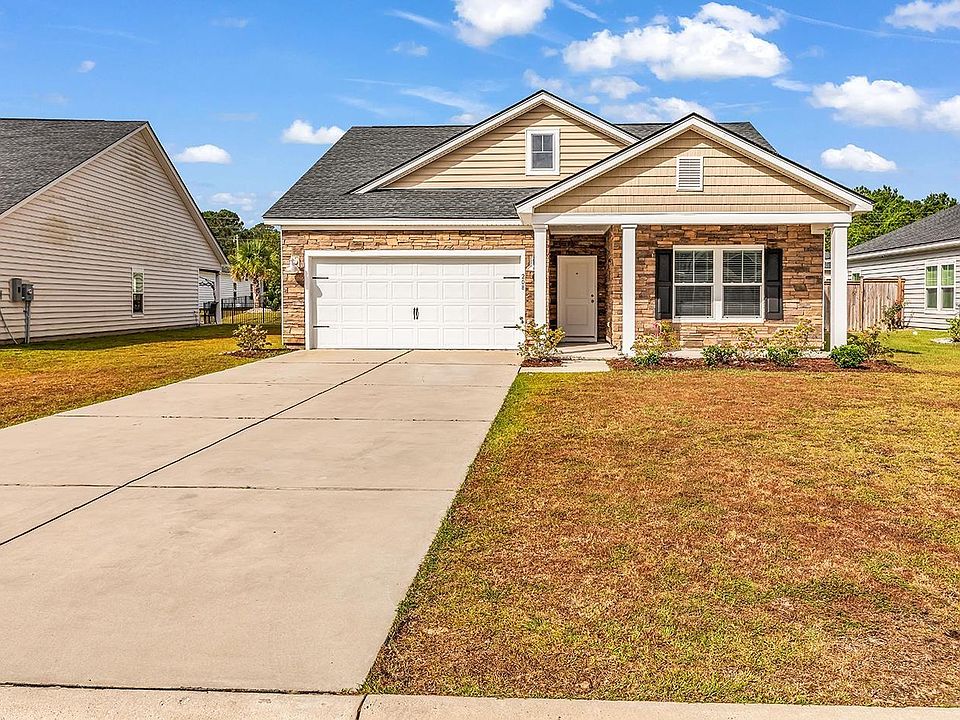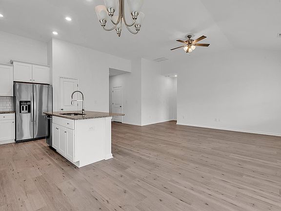 Excellent opportunity to purchase this 4-year-old, one level home without steps in the quaint, natural gas community of Queens Park. New LVP flooring flows throughout the main living space, and the interior has been freshly painted. The kitchen comes equipped with stainless steel appliances including gas range, work island, white cabinetry & subway tile backsplash and adjoins the great room with vaulted ceilings. The owner's suite boasts a tray ceiling, two sinks, shower and a substantial walk-in closet. A glass slider off the breakfast nook allows access to the spacious fenced-in backyard with covered porch. Queens Park is an established 82-home community with low HOA dues situated near the intersection of highways 90 and 22, approximately 10 miles from the beach! Call your agent and schedule a showing today.