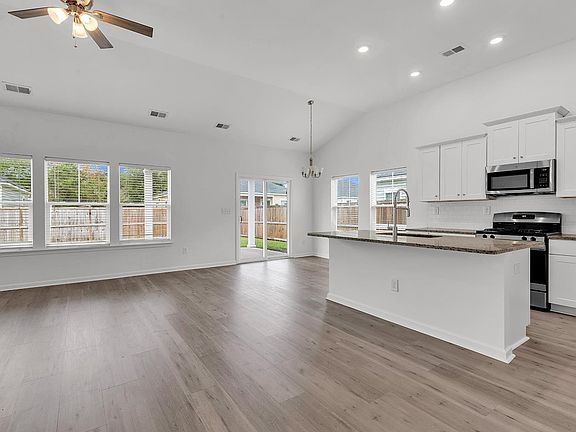Work islandStainless steel appliancesCovered porchGas rangeSpacious fenced-in backyardNew lvp flooringGlass slider