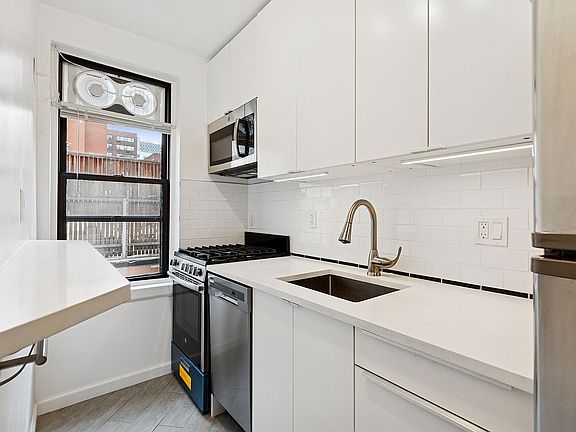 The unit features high ceilings, oversized windows, renovated windowed kitchen with brand new stainless steel appliances, and more.