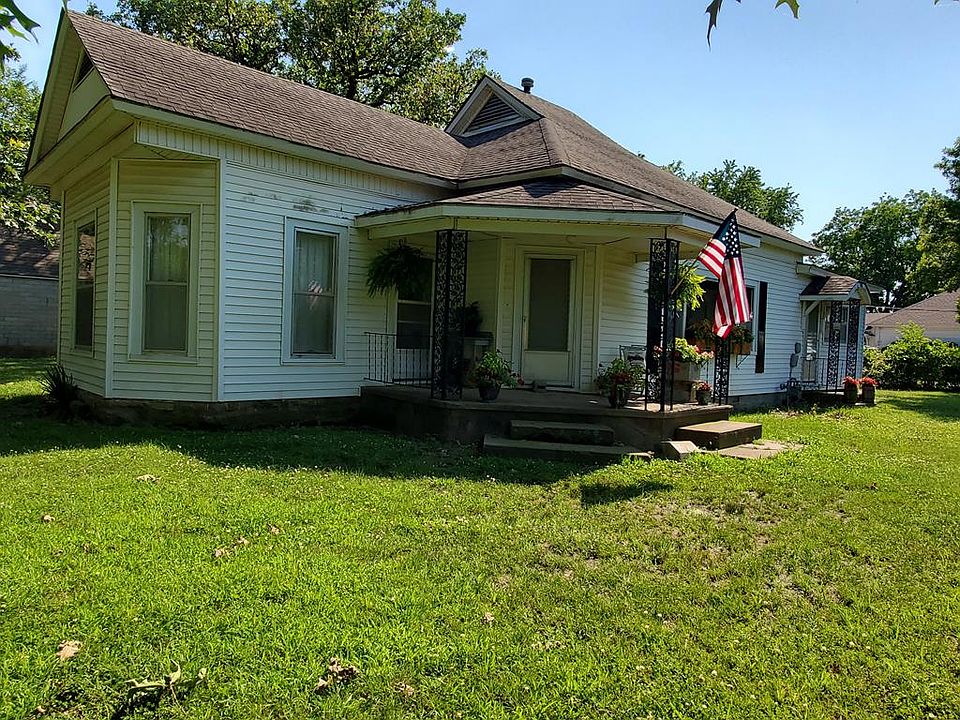 This charming 3 bed 1 ba home has so much to offer. Large open floor plan with gorgeousus refinished original hardwood floors, fresh paint throughout, new shiplap accent walls in kit, and lots of recent updates that make it a great buy. Good roof and maintenance friendly vinyl siding. Nice covered porch, large patio and attached carport plus large 2 car garage/barn. All on a shady corner lot!!