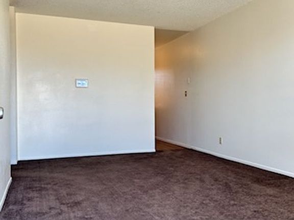 -2 bedroom, 1 bathroom unit. -Kitchen has new built in microwave, range, and refrigerator. It also has vinyl flooring. -Carpet in living room, hallway and both bedrooms. -Ceiling fans in bedrooms. -Storage cabinets and hall closet in hallway. -Full bathroom with new toilet and vanity. -Bistro style backyard area. -Evaporative cooling and forced air heating. -Washer/dryer hook-up in kitchen. -Refrigerator provided but not warrantied. -Security system installed.