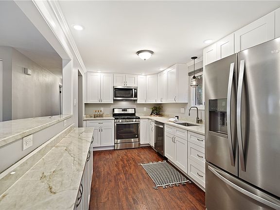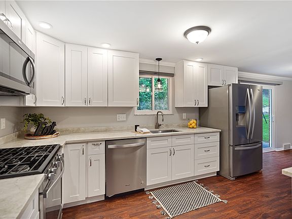 Welcome to this charming split-entry home nestled on a serene cul-de-sac street. Boasting four bedrooms, this residence has been meticulously updated throughout. Step inside to discover new carpeting and freshly painted walls. The heart of the home, the kitchen, showcases stunning updates including sleek stainless steel appliances, and quartz countertops.Three spacious bedrooms and a modernized bath with ceramic tile surround complete the main level, offering comfort and convenience. Slide open the glass doors to access the patio and enjoy the tranquility of the private yard. Downstairs, the lower level beckons with a brightly lit game room, perfect for entertaining. Additionally, find a versatile primary bedroom or office space, a convenient laundry facility, and a fully updated bath featuring a luxurious walk-in ceramic tile shower. With the added bonus of a one-car garage, this home offers both elegance and practicality for discerning buyers.