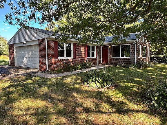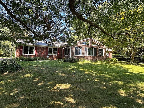 Southern Exposure Brick Home with Sunroom, Fresh Paint, New Kitchen & Bath Flooring, Replaced Most Outlets, Switches, & Covers. Welcome to this one-owner brick home with two car garage. This property offers 3 bedrooms, 2 full bathrooms, a dining room, kitchen, living room, and a bright sunroom with pine walls and a cathedral ceiling - perfect for relaxing year-round. Fresh Paint, New Kitchen & Bath Flooring, Replaced Most Outlets, Switches, & Covers. The kitchen was thoughtfully updated in 2005 with oak cabinetry and granite countertops, while both bathrooms were remodeled in 2015. The living room, dining room, and hallway are carpeted, but finished hardwood floors lie underneath, ready to be revealed if desired. The existing carpet needs to be removed - flooring choice is left to the new owner. The sunroom is carpeted over a concrete slab. Bedrooms are finished hardwood. Sunroom was added in 2000 with supplemental wall-mounted propane heater. Windows were updated around 1990, and the home offers solid construction with a layout ideal for comfortable living and future customization. Additional features include: Fire pit, patio, partial-house propane generator for added peace of mind, Vector security system (needs reactivation), attic with hallway access, roof replaced in Fall 2021, mature trees and plenty of space for a garden, farm behind property.