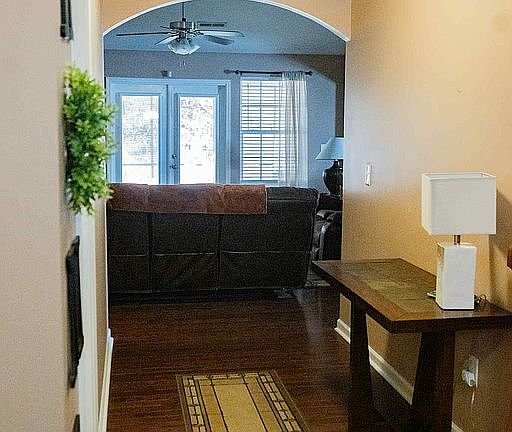 Working islandGarden tubElegant archwaysScreened-in back porch additionInviting open floor planHardwood floorsSplit-bedroom layout