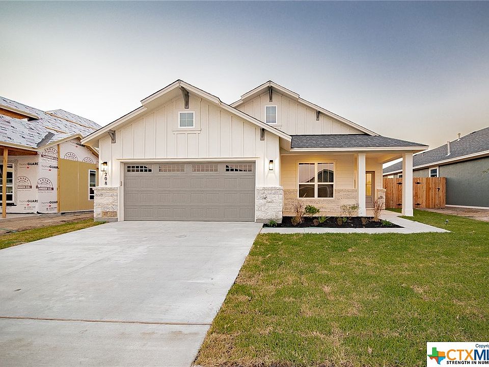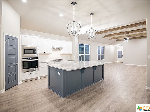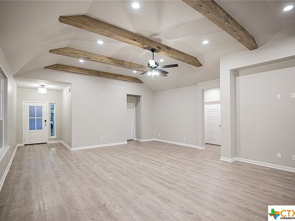 The beautiful Wimberly Texas Farmhouse sits on an peaceful lot in Victoria's most sought-after community, TerraVista! This open concept, split bedroom plan features a large family room with cedar beamed ceilings, a gorgeous kitchen with stainless steel appliances, granite counter-tops accompanied with a designer back-splash, split cabinetry, and a white farmhouse sink. Master retreat features a spacious double vanity, a Euro walk-in shower, and an oversized master closet. This home also includes an oversized 2 car garage and comes fully fenced-in with a landscaping package giving the home extra curb appeal.