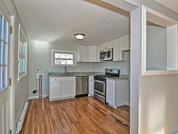 This bright, sunny ranch has just been renovated - there's nothing to do but move in! Updates include a new roof, all new windows, new plumbing, and new electrical! The kitchen features brand new white shaker cabinets, granite counters and stainless steel appliances, and hookups for stackable W/D. A large picture window in the living room floods the living/dining area and kitchen with natural light. A new vanity, light fixture and new toilet have been installed in the bath, and the shower has been freshly tiled. Gleaming refinished hardwood floors and fresh paint throughout the home. The big backyard is fully fenced with a shed and garden area. Great starter home or downsizer - this one won't last! HIGHEST AND BEST OFFERS DUE BY NOON ON TUESDAY 2/20.