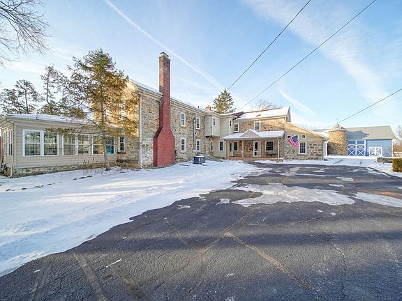 The stunning Glasgow federal stone estate set on 6 breathtaking acres in Western School District—an incredible opportunity offering exceptional value for a property of this caliber. Rich in character and craftsmanship, the main home features 5 bedrooms, 2.1 baths. Multiple inviting living spaces include a recently finished vaulted media/family room with gas stove, library with custom built-ins, elegant parlour with fireplace, completely renovated 3/4 season room, and flexible bonus space. The updated cherry kitchen with granite counters opens to a sunlit breakfast nook overlooking acreage and the sparkling in-ground saltwater pool. Formal dining showcases hardwood floors and a statement fireplace.