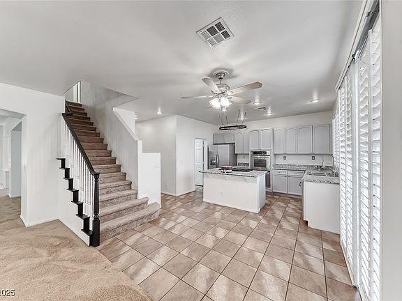 Remarkable Green Valley home in the highly coveted Westwood Village with a massive heated 40x20 Pebble Tec Pool and Spa! This beautiful 4-bedroom, + den, 3-bath property offers 2,349 sq ft, of lavish living just 10 minutes away from the Las Vegas Strip. The tandem garage offers ample space for multiple cars, additional storage, boat, or recreational vehicles. Enjoy a modern kitchen with double ovens, KitchenAid stove top with downdraft, 5 burners, stainless steel appliances +2 Fridges, all walls freshly painted, and brand new carpet throughout. The open-concept layout is perfect for entertaining, or relaxing, and features shutters on every single window. The backyard has abundant space for endless possibilities. Zoned for top-rated schools, parks, shopping, dining, and a myriad of amenities. Original owners who have meticulously maintained the residence since it was built, loved and cared for. Don't miss out on this one of a kind opportunity to call this wonderful place your new home!