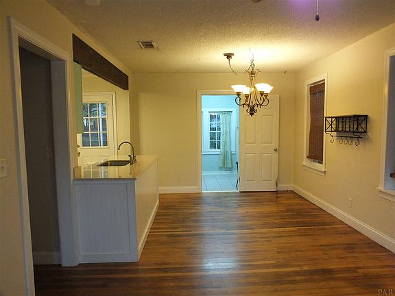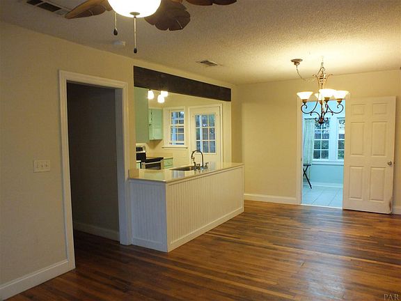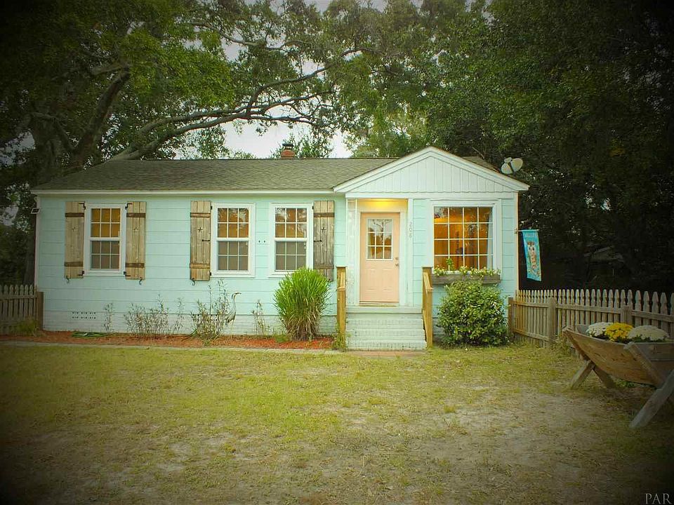 Adorable cottage-style home in Navy Point with original hardwood floors thru out. The kitchen has been remodeled with quartz countertops and is open to the Living and Dining room areas. Enjoy stainless steel appliances and exposed brick in the kitchen as well as a door (and doggy door) that goes out to the screened-in porch. There is also a large laundry room off of the Dining room. This home is 1 block from the neighborhood boat ramp and the neighborhood has 2.5 miles of walking and bike trails along Bayou Grande as well as a neighborhood playground. Enjoy a picket fence in the front of the house and a chain link fence in the back. Very convenient to NAS and downtown.