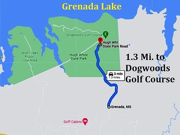 Grenada Lake Area 3.258 Ac. Located 1 mile from The Dogwoods Golf Course at Hugh White State Park on Grenada Lake. This land is only 1.7 Mi. to Piney Woods Boat Ramp, 13.4 Mi. to Graysport Crossing Boat Ramp and 7.9 Mi. from the Grenada I-55 Exit 206. This is the perfect place for a weekend hangout, permanent residence or fishing and hunting headquarters. Dirt work for your House Pad or RV and Camper Pad has already been done and gravel driveways are installed. 36,000 Acre Grenada Lake is world famous for trophy crappie and bass.  The land is Tract 8 of the attached plat.
