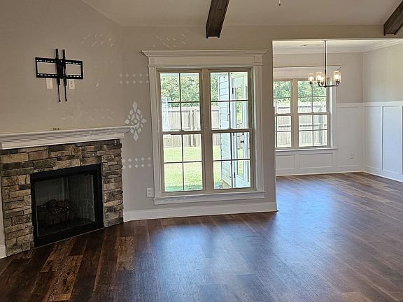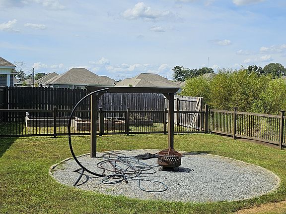 Fenced backyardExposed beamsLarge islandLarge master bathroomLarge walk-in closetSolid surface countertopsSoaking tub