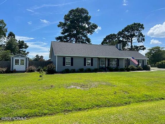 Special features of this home include a gorgeous, vaulted, sunroom addition built in 2018, granite kitchen, fireplace, fire pit, tiki bar area, beautifully landscaped private yard, updated bathrooms, outdoor shed, and patio area. Minutes from the back gate of Camp Lejeune, shopping ,and dining. Hurry and make an appointment today!