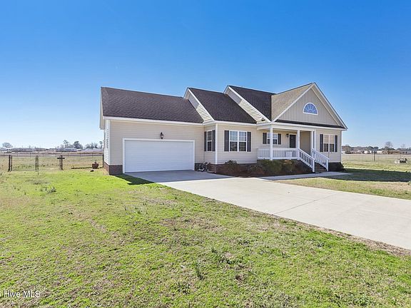 Welcome home to this charming 3-bedroom, 2-full bath residence nestled in a family-friendly subdivision—less than 15 minutes from Seymour Johnson Air Force Base and it is located in the Spring Creek School District! This inviting and cozy property, is perfectly situated in the cul-de-sac on a generous .65-acre lot. This home boasts an open floor plan with vaulted ceilings in the living room, where natural light pours in, creating a spacious, but intimate atmosphere. The primary bedroom features a beautiful trey ceiling, one walk-in closet and one standard closet, as well as an ensuite with a double vanity. Additional highlights include the home has been freshly painted, new carpet in the guest bedroom, a fenced backyard which is ideal for kids and pets, and a 2-car garage with ample storage and parking. The refrigerator, washer, and dryer are all conveying! Plus you get a bonus full size refrigerator that is also conveying located in the garage! Making this home move in ready!