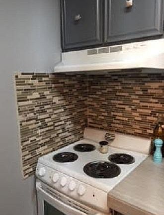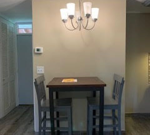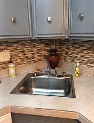 Wonderfully updated with wood / tile flooring & glass tile backsplash. The decor is light, bright & inviting.