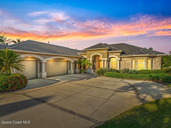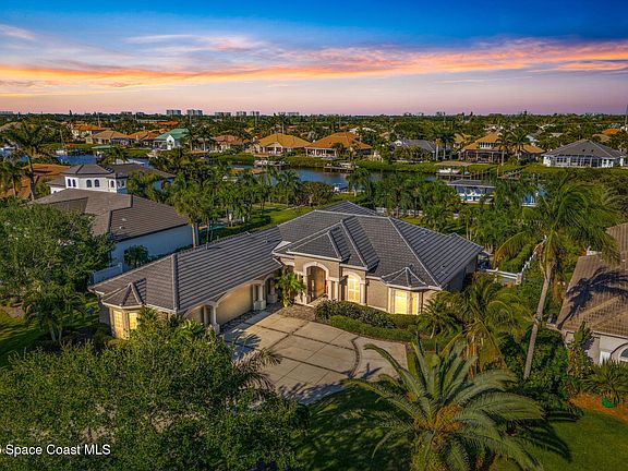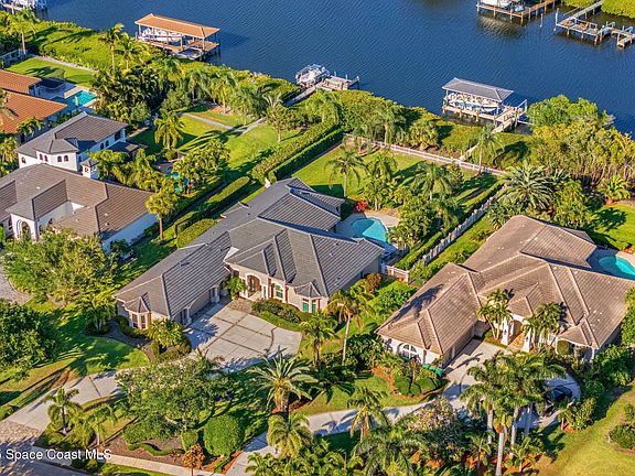 Welcome to this stunning single-story estate in the most exclusive guard-gated community on the Space Coast, Lansing Island. Perfectly situated on the Intracoastal canal, this 3,937 sq ft home offers the pinnacle of luxury waterfront living, 4 bedrooms + office, and 4 full bathrooms. Step inside to soaring ceilings and an expansive open floor plan designed for seamless indoor-outdoor living. The kitchen is a showstopper, featuring granite countertops, a large center island perfect for entertaining, and high-end finishes throughout. Tile/wood flooring flow gracefully through the home, while walls of impact-rated windows flood the space with natural light and provide peace of mind. Enjoy a recently resurfaced heated saltwater pool/spa, surrounded by lush tropical landscaping and a generous patio space. The dock equipped with two boat lifts, a true boater's paradise. A brand-new 2024 tile roof, whole-house generator, and an oversized 3-car garage, complete this turn-key home.