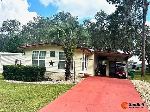 Resort-Style Living in a 55+ Community! Located in a highly sought-after 55+ resort community on leased land, this two-bedroom, two-bath manufactured home offers comfort, style, and convenience. The community features endless amenities, including a golf course, on-site restaurant, two clubhouses, and two sparkling swimming pools-perfect for those who enjoy an active lifestyle. Inside, the home has been thoughtfully updated with modern touches. The kitchen has been refreshed and is ready for all your cooking needs, while updated PEX plumbing throughout adds peace of mind. Both bathrooms have been improved, and the home boasts a spacious bonus room with a drop ceiling-ideal for hobbies, an office, or extra entertaining space. Gorgeous hardwood floors run throughout, enhancing its warmth and charm. The exterior features are equally impressive. A golf cart garage with a built-in stereo system makes for a fun and convenient space, while the extra-long driveway provides plenty of parking for multiple vehicles. Call today to schedule your personal or FaceTime viewing!