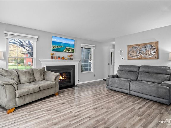 Don't miss this beautifully updated 2 bed, 2 1/2 bath END UNIT carriage home with an attached 1 car garage (plus 2 parking spaces), full basement and its own private entrance. Almost 1700sf of total living space and it's move in ready! Entertain easily in your open living room that flows beautifully into your kitchen and out to your private deck to enjoy all seasons with enough space for everyone. Your private deck overlooks a maintenance free yard to enjoy making it feel like a single family home without the work! When it's time to rest, head upstairs to the comfort of your 2 bedrooms, the large primary bedroom allows extra space for a seating area by the windows and 2 spacious closets for all your needs. The updated, shared full bathroom closes off to the primary bedroom to give extra privacy. Head downstairs to the full, finished basement for extra flex space to enjoy with its own full bathroom and the ability to add a legal bedroom later if desired! NEW/Recently UPDATED: Roof (2019), Siding (2018), Windows (2018), Furnace (2022), A/C (2014), Carpet (2021), Garage door (2019). The unit has parking directly outside the garage and an additional assigned parking space as shown on the photo map attached. Convenient location off Route 47 with easy access to I88. FHA Approved!