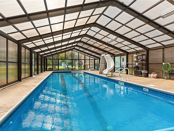 OWNER FINANCING POSSIBLE! You'll love all the space in this 4BR, 4BA Tri-level with Basement plus 16' x 54' in ground Pool complete with a 30' x 65.5' Glass Enclosure (almost 2,000 sq ft) over the pool with Slide and Hot Tub for the ultimate time in Family Entertainment! The 2010 Built enclosure features 10 sliding doors to open up when weather is nice! Pool got a new liner, pump, and automatic pool cover in 2021, It's possible to swim laps year round!! There's also a pool house that houses pump, heater, and all pool equipment including automatic vacuum! From Pool level, there is direct access to Bath/Laundry Room and Family Room.
