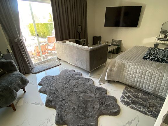 This is attached to the house. The private entrance is very spacious, just newly decorated. large bedroom, 400 sq ft. Large queen-size bed. The room is just outside the heated pool and Jacuzzi, with access to both before 9 pm. The room includes a small refrigerator, a coffee station with a Keurig coffee pot, & a small microwave. Toaster. Large private bathroom with tub and shower and bidet toilet. Flat-screen TV with Spectrum cable and fast internet included. Includes utilities. Parking is available on the street or in the gated driveway. Small dogs are allowed with an additional security deposit. no smoking inside or surrounding area of the home, or pool.
