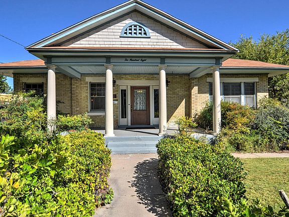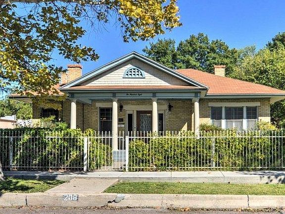 Built in 1908 this charming brick home is located in an older part of Las Cruces which is part of the Alameda overlay district and this property has been placed on the National Register of Historic Places. Although there have been extensive renovations the original wood flooring, some windows and wood shutters remain through-out. Some of the updates include fresh paint inside & out, new water filtration system (water softener & RO located in the cellar), new windows in the kitchen and guest room suite and smart irrigation system that automatically knows when to water (based on rainfall). The kitchen features tile counters, Wolf gas range and a stained-glass window. There are 2 bedrooms and an office/library with floor to ceiling cabinetry. Other features include 4 wood burning fireplaces, refrigerated AC & 270 S.F. cellar. Brick walls & metal fencing surrounds the property along with an electric gate opener for the back parking area. It is believed that all the light fixtures are from the Old Amador Hotel.