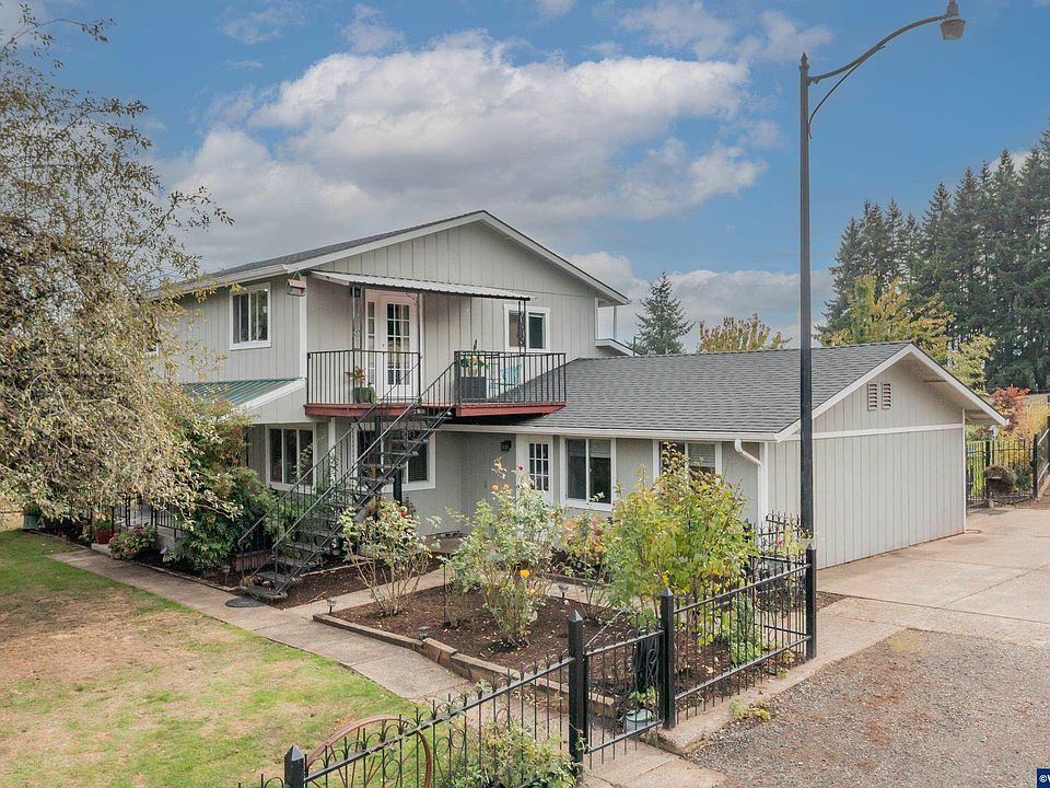 Charming 4-bed, 2.5-bath home on 3 usable acres in NW Corvallis—perfect for hobby farming or horses! This 2,558 sq ft property features a bright, updated kitchen w/granite counters, spacious living areas, & a main-level primary suite w/deck access & a den. Upstairs offers three bedrooms plus an office with balcony. Fenced pasture, open grounds, & a large ~1,300 sq ft detached shop/garage provide endless possibilities for animals, equipment, or projects. Enjoy peaceful country living just minutes from OSU!