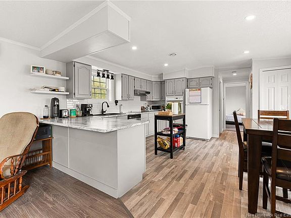 Welcome to this charming mini-home in the sought-after Domaine du Ruisseau neighborhood of Dieppe! The highlight of this property is its rare and spacious private backyard, featuring an oversized deck, perfect for relaxing or entertaining. The exterior also offers a paved driveway and convenient storage shed. Inside, enjoy a bright open-concept layout with a beautifully updated kitchen showcasing modern cabinets and a sleek backsplash. The inviting living room and three comfortable bedrooms provide ample space, with a unique “Jack-and-Jill” half-bath connecting two of the bedrooms for added functionality. A spacious 4-piece main bathroom and dedicated laundry area complete the interior. Numerous updates include a new roof (2022) and mini-split (2023), along with a full renovation in 2017 that added new flooring, cabinets, countertops, sinks, lighting, and more. Move-in ready and offering a rare backyard oasis, this home is a must-see—schedule your visit today!
