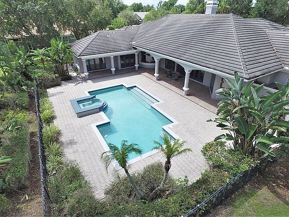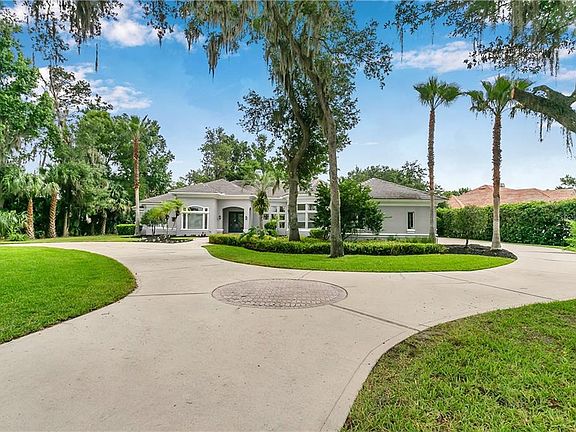Elegant Heathrow Woods single story waterfront estate. Striking elevation with brick paved entranceway leading from the welcoming large circular drive and massive side-entry 3 car garage with private drive. Elegant open formals for entertaining feature soaring ceilings with custom trays, custom architectural features and endless views of the sparkling oversized pool. The lavish master suite features enormous walk in closet with custom built ins, travertine clad bathroom with jetted tub and custom circular shower. Executive office features french doors, high ceilings and views of the expansive estate. The kitchen features a 2,000 bottle walk-in, climate controlled wine cellar that displays and protects your finest vintage bottle, a six burner gas stove top, custom cabinetry, professional grade appliances, large island with prep sink and butlers pantry. Two private guest bedrooms with en-suites surround a study area as well as secluded covered lanai. The fourth bedroom features a custom curved wall with ample windows. The flex/media/workwout room opens to the large covered lanai overlooking the pool. Step outside to the resort-style pool area with pavered deck and custom tiled spa. Schedule your showing today! Do not miss the immersive virtual tour!