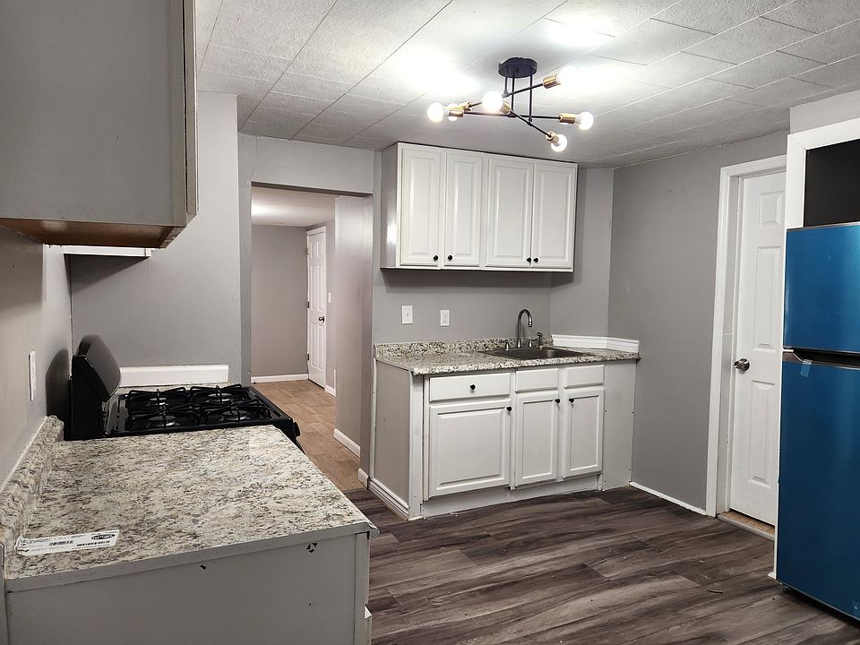 Updated kitchenBright large windowsFreshly painted wallsNew flooring