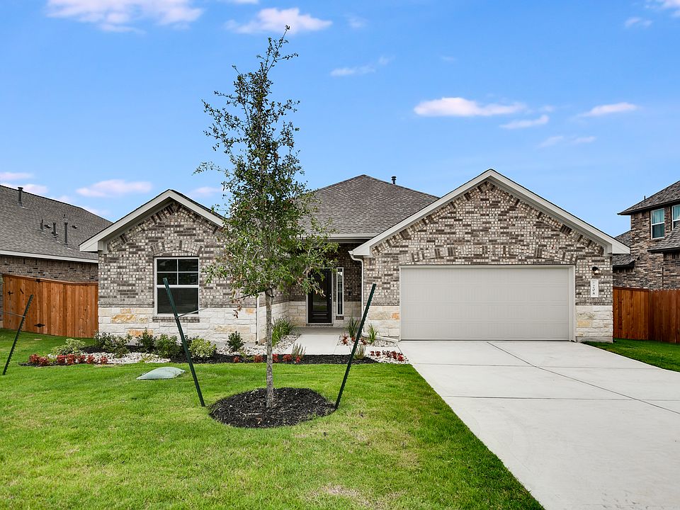 This single-story home features our popular Trinity floor plan, with three bedrooms, and two baths. An open kitchen concept with quartz countertops, stainless steel gas appliances and white kitchen cabinets are added designer qualities. Luxurious vinyl plank flooring through the main living areas and a large extended covered patio overlooking a large backyard complete this wonderful property.