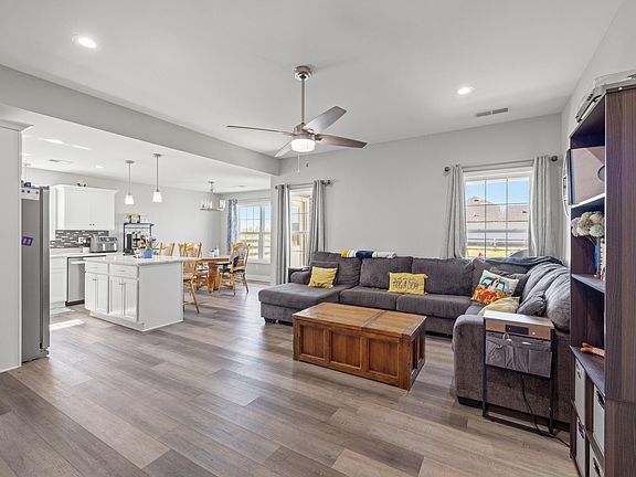Dining areaKitchen islandWhite cabinetsTons of storageVaulted ceilingsTray ceilingsStainless appliances