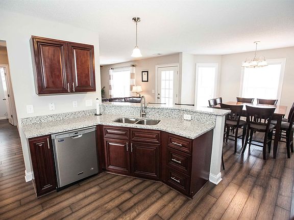 - Kitchen: Bar, Counter Tops-Granite, Eat In, Floors-Hardwood, Floors-Laminate, Cabinets-Glazed, Backsplash-Granite