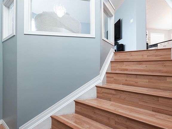 Bright & Sunny 4 Bedroom Bi-Level home in the desired Regency Park Neighborhood. Sure to be impressed from the moment you walk in, with gleaming laminate floors going up into the main living room. Large windows allowing an abundance of light. A modern kitchen with white cabinetry, new stainless steel appliances, eating nook & large dining area. Door to an upper deck overlooking mature fruit trees, a vegetable garden & a lower deck & grass area. Back inside the main floor boasts 3 bedrooms, the primary with a large closet & 3 piece ensuite, a main 4 piece bathroom between the bedrooms. Lower level has a large recreation area, a sitting area or future den or workout area, & a really large bedroom. Again large windows allowing plenty of sunlight to shine in. The laundry utility room is large enough with storage as well as the space below the stairway & front entrance. All this & a double attached garage that's insulated and drywalled. Hot water tank, shingles, paint, carpet, appliances recently upgraded.
