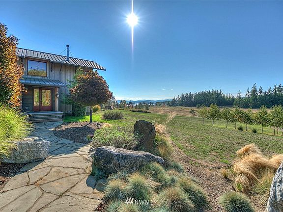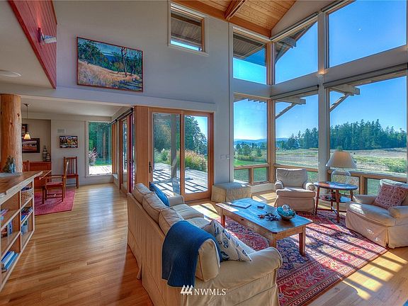 Modern design meets Island living. Stunning west-facing light-filled waterview home in Deer Harbor sits atop 5 +/- pastoral acres overlooking conserved meadow. The 3 bed/2.5 ba. home incorporates refined organic details w/clean contemporary style. Great room w/dining, wine cellar, office loft, Wolf range, farm sink, fir trim, built-in cabinets, nooks & bunks, radiant heat, red oak floor, live-edge elm & granite counters, attached garage features living roof, fenced garden. Stoltz-Kau Architects.