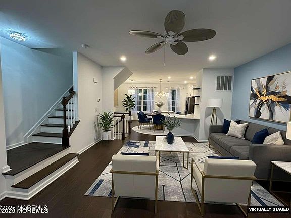 This gorgeous three-story townhome is in the desirable New Visions community. The floor has a half bath, bar room/den. Walk out onto the private patio that opens to a serene, wooded surroundings, offering a peaceful, natural backdrop. The second floor features an open-concept design, seamlessly connecting the kitchen and living room, The space is filled with natural light, enhancing the airy and spacious feel. The third floor has three bedrooms and two full baths. Experience the Jersey Shore dream! This is a perfect blend of coastal living and convenience. This well-maintained unit features modern amenities, easy access to local shopping centers, and is just minutes from major highways, making travel effortless. Ideal for those seeking a vibrant community with the charm of beachside l