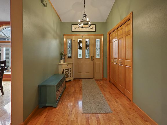 Stunning 5-bedroom, 5-bath executive home in Buffalo Hills. This house delivers over 5,000 square feet of spacious living, blending elegance and comfort at every turn with cathedral ceilings, hardwood floors, and a chef’s dream kitchen showcasing rich cherry cabinetry, a 6-burner gas cooktop, double wall ovens, dual dishwashers, and premium stainless appliances; enjoy both formal and casual dining spaces, a cozy screen porch, and a welcoming gathering room with gas fireplace and a beverage area, while the main level adds convenience with a spacious laundry, central vac, and mudroom leading to a oversized heated 3-car garage. Upstairs, the luxurious primary suite shines with dual sinks, tiled shower, and a huge soaking tub This level has two additional bedrooms, one with a walk-through bath. Downstairs expands the lifestyle with a private office, two more bedrooms (one with fireplace, one with walk-through bath), a fitness room, and a family room with a third gas fireplace and back stairway to the garage. All of this is set on a beautifully landscaped lot with mature trees, and a private patio oasis.