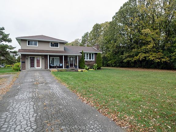 This spacious multi level home sits back off the road on a beautiful 2 1/2 acre property, only 7 minutes to Belleville. A generous driveway allows for many cars for all your family and friends. You will be pleased by the covered front verandah which is a great spot for your morning coffee. The front foyer leads you to the open concept living, dining and kitchen area. An abundance of bright white kitchen cabinets with crown molding, valances, and a breakfast bar for quick meals or a great spot to chat. The living room features a cozy propane fireplace for those chilly evenings. Back down to the ground floor which provides so many options. An office with its own exterior entrance and a powder room right around the corner. If not needed for work, perhaps you have a family member this would accommodate? On the same floor, a family room with access to the 3 season sunroom. What a great spot to sit, listen and watch the wildlife in your own back yard. And, what a great backyard it is! Lots of green grass, many trees, a deck, swing set and a large outbuilding with a small fenced in area. Back inside and upstairs which provides three bedrooms and a full bathroom. The basement offers a 4th bedroom and an oversized utility room. Worth Mentioning: House Shingles approximately 10 years old; Most windows replaced; Forced Air Propane Furnace approximately 10 years old; Electric hot water tank approximately 5 years old; carpet free; some measurements less jogs.
