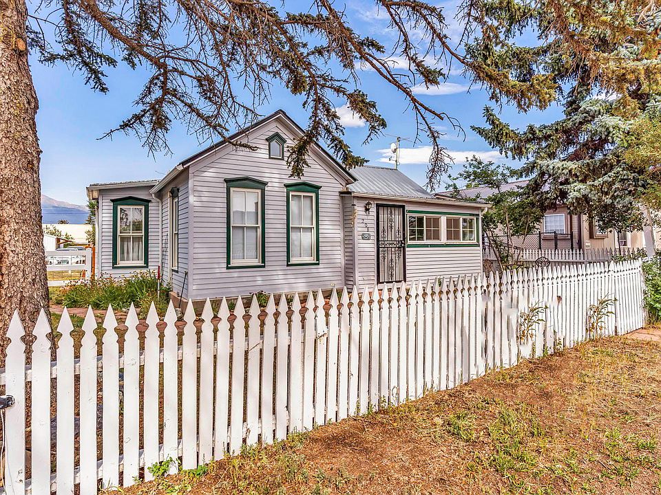 Remodeled charmer with white picket fence, vaulted ceilings, and refinished wood floors. New KitchenAid granite/hickory kitchen with copper sink, spa bath with jetted tub, and floor-to-ceiling bookshelves. Enclosed porch, new 11⁄2-car garage, and south-side Trex deck with Sangre views. Bright dining and windowed breakfast nook. Move-in ready with classic curb appeal and mountain ambiance.Storybook curb appeal greets you with a white picket fence, a landscaped front yard anchored by a massive spruce, and a south-side Trex deck capturing Sangre de Cristo views-perfect for morning coffee or sunset unwinding. Extensively remodeled: totally new kitchen and bath, refinished wood floors, fresh paint, and a new 11⁄2-car detached garage. The enclosed front porch (with coat closet) charms with a tin ceiling and abundant windows. Inside, vaulted ceilings elevate the living room, accented by great lighting and floor-to-ceiling bookshelves. A large dining area opens to a window-wrapped breakfast nook. The vaulted kitchen showcases rustic wood beams, granite countertops, tile flooring, hickory cabinetry, new KitchenAid appliances, and a copper double sink. The bath shines in soft grays with a jetted tub, tiled surround and floors, and a marble-top vanity. The spacious primary bedroom adjoins the bath; a second bedroom doubles nicely as an office. Relax on the deck with sweeping Sangre views, stroll the neighborhood, or launch to nearby mountain adventures, parks, and small-town amenities. Ideal for simple homestead touches-think raised beds, herbs, or container gardening in the sunny yard. (Buyer to verify local guidelines for any small animals or structures.) Set in a peaceful neighborhood with mountain views from the deck, you're positioned for easy daily living while enjoying the region's signature scenery. Here, you are within walking distance where you can indulge in fantastic shopping, stock up on groceries, and relish fun dining experiences. Further afield, Florence and Canon City, home of the famous Royal Gorge, can be reached in 45 minutes, while a scenic one-hour drive takes you to Salida, where a plethora of amenities await. For those traveling by air, the property is about 1.5 hours' drive from the Colorado Springs Airport, providing both convenience and accessibility.
