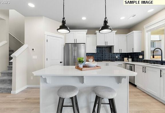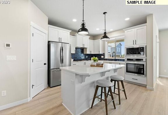 PLEASE VISIT SALES OFFICE TO TOUR HOMES @ 117 S 87th Ave, Ridgefield, WA. Open daily 11-5. MOVE-IN READY! Special incentives up to 30k with preferred lender! Spacious 4 bedroom home with 2.5 bathrooms, and a 2 car garage. Home features a great room with gas fireplace, laminate Floors through first floor, 9ft ceilings on main level, upgraded quartz countertops throughout, large island, gourmet kitchen with gas cooktop, a primary suite with walk-in closet, heat pump with A/C, front yard with irrigation, on a fully fenced lot! Community features walking trails, green spaces, and park areas. Sample images - actual finishes and colors will vary. Other homes also available.
