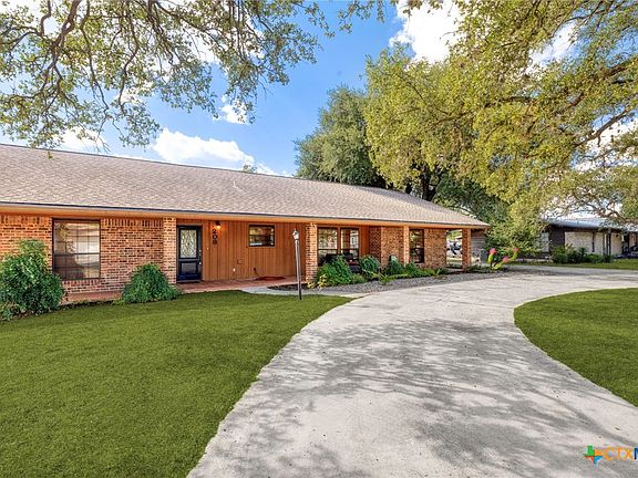 Get ready to fall in love with this cheerful ranch-style gem in Luling! This three-bedroom, two-bath home has all the charm you could want, starting with the big shady trees, circular driveway, and that huge front porch just begging for rocking chairs and sweet tea. Step inside and you’ll find a bright, happy space where the living room shines with beamed ceilings, an amazing brick fireplace, and original built-in bookshelves that give the home its own personality. The kitchen has a fun retro feel with wood cabinets, a built-in stove, microwave, and range, and the whole place is flooded with natural light. Closets and storage are everywhere, and the primary suite has a stylishly updated tiled walk-in shower. Out back, the screened-in porch is a total vibe—it’s perfect for game nights, quiet mornings, or even a future four-seasons room if you want to get fancy. The fenced backyard backs up to Luling Foundation land, so you get peaceful country views with the convenience of being close to downtown. With appliances included, a laundry room with storage and a sink, tons of garage space, and no HOA, this home is ready for you to move in and make memories. It’s the kind of happy spot that makes you want to kick off your shoes, invite friends over, and just enjoy life in Luling. This home isn’t just a sweet spot—it’s super commute-friendly. You’re just about 23–30 minutes from Seguin via I-10, and around the same distance (30–35 minutes depending on traffic) from San Marcos. Plus, I-10 right nearby makes popping over to bigger hubs a breeze.