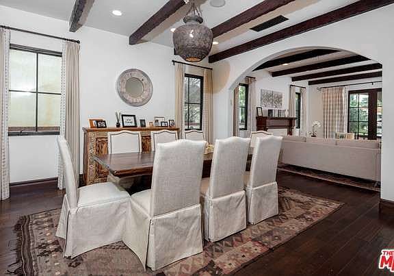 5 Bedroom 6 Bath Spanish includes old world character & graceful charm. Formal guest entry leads into elegant living room w/ high barrel ceiling, marble fireplace & large pane-glass windows. Dining room features step-down private garden/patio. Light bright kitchen has a warm & fresh feel with inviting breakfast room. Lots of built-in storage. Grassy back yard w/ avocado trees. Art Deco bathroom in excellent condition. The backyard has a beautiful in-ground pool and barbeque area.